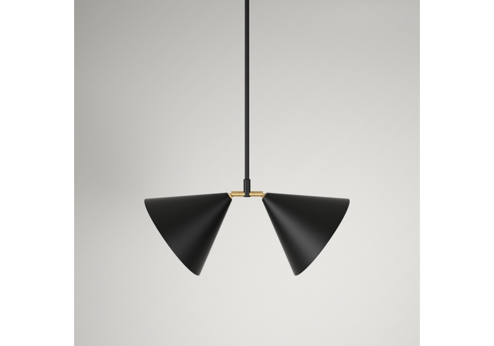 Double conçu par Atelier Areti est une lampe à suspension caractérisée par deux abat-jour en métal verni en forme de cône. Disponible en noir ou blanc. Ampoule non incluse.