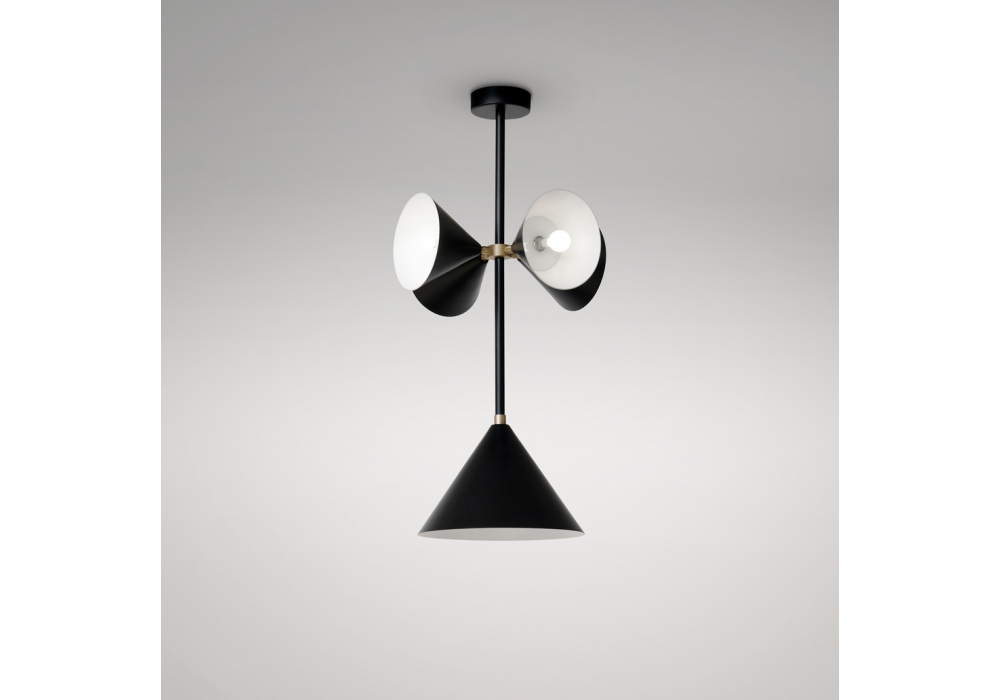 Axis 4 Cones conçue par Atelier Areti est une lampe à suspension en métal enduit de poudre, disponible en différentes finitions.