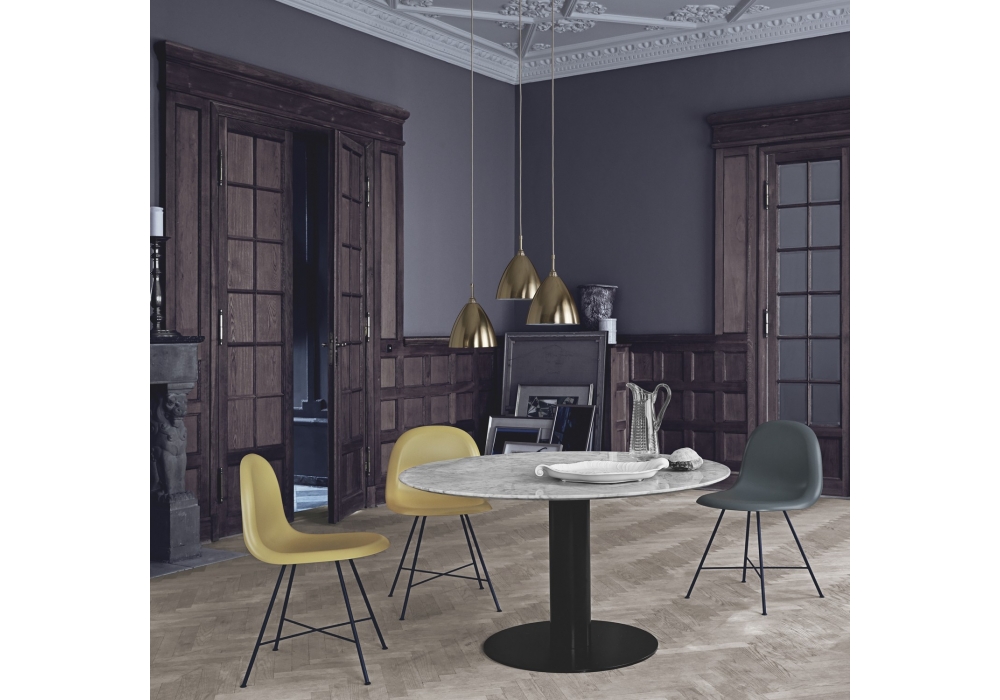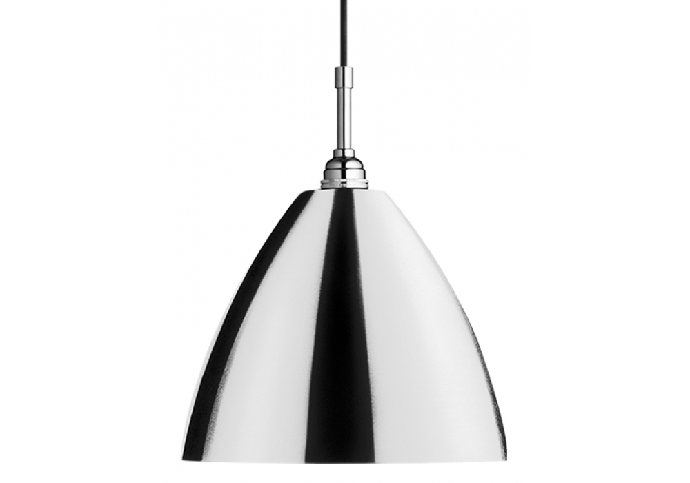 Bestlite BL9M conçue par Robert Dudley Best for Gubi est une suspension avec abat-jour en métal peinté en poudre. Le cordon textile correspond à l'abat-jour, sauf le chrome plein qui est noir, tout en laiton est d'or et la porcelaine est noire avec rosette en chrome, ou dorée avec rosette en laiton. Ampoule non incluse. Rosette inclus.