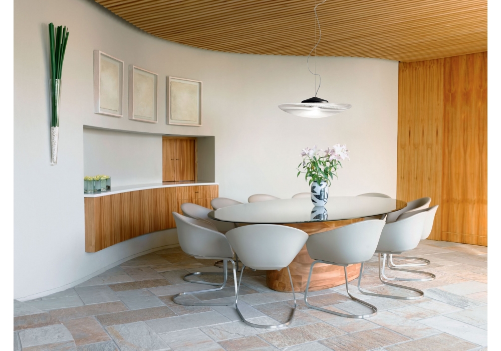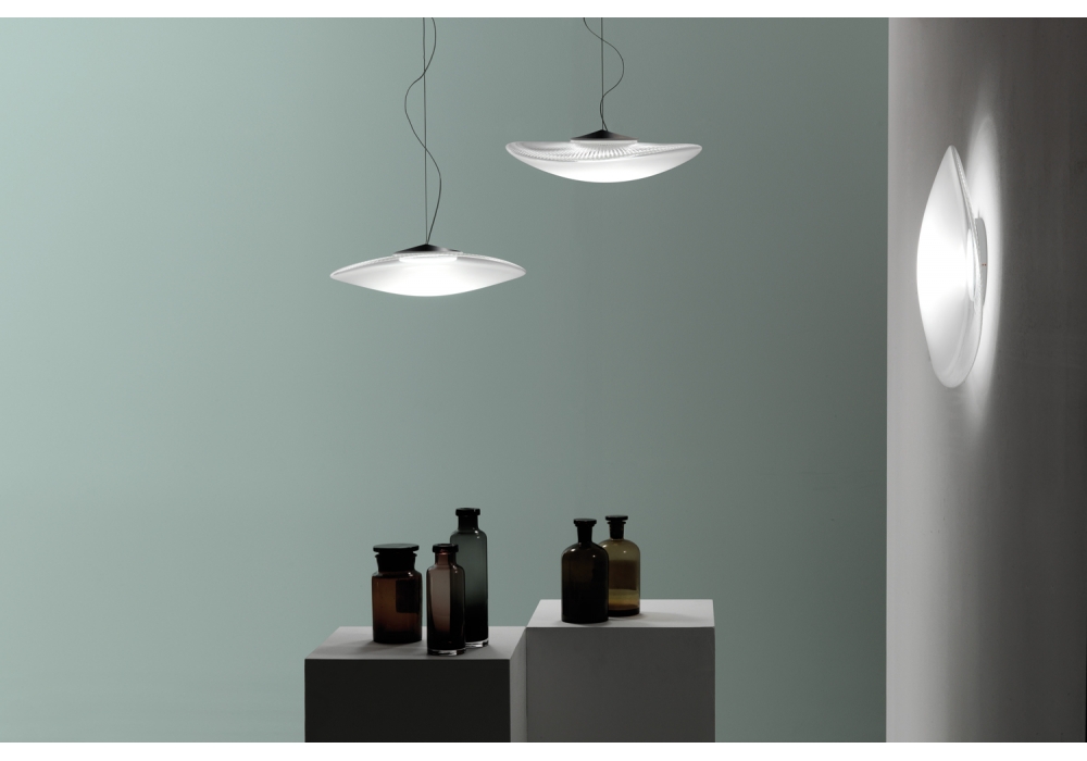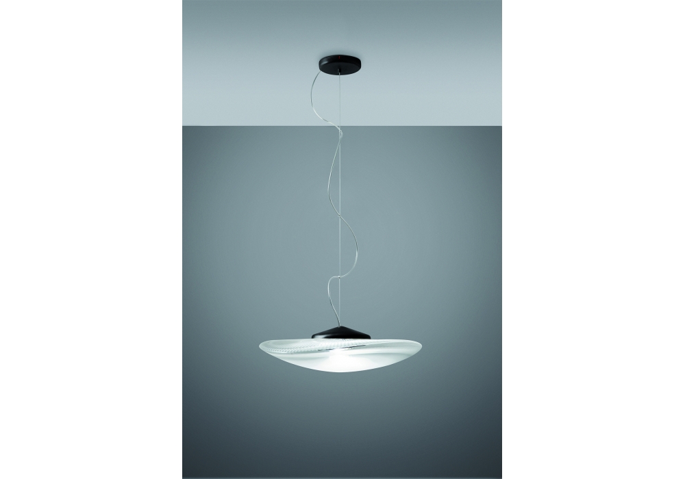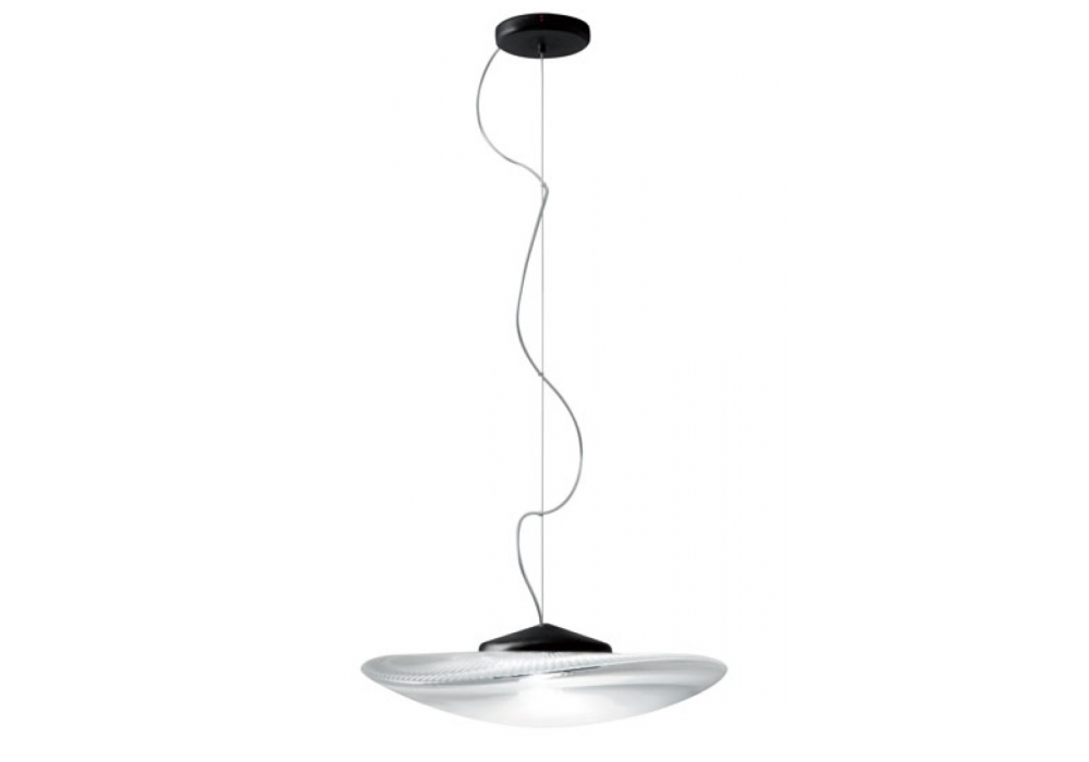 Loop F35 designed by Constance Guisset for Fabbian is a beautiful suspension lamp by innovative design. Loop F35 is composed by a transparent blown glass diffuser, streaked on top and sandblasted on the bottom with matt black painted metal structure. Also available with different light sources. Protection Index IP 20.