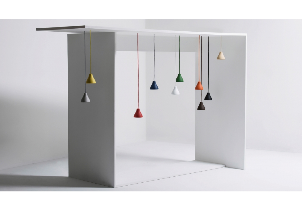 Claesson Koivisto Rune w131 concu par Wastberg est une suspension en aluminium recyclé. La technique de fabrication de ces petits luminaires leur offre une finition légèrement granuleuse et texturée du plus bel effet. Disponible en dix couleurs différentes.