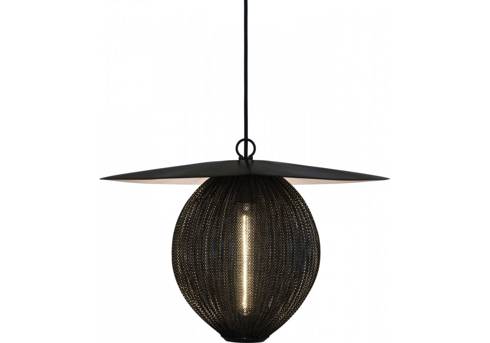 Satellite conçu par Mathieu Matégot pour Gubi est une suspension en métal perforé et plié. Disponible en différentes finitions.