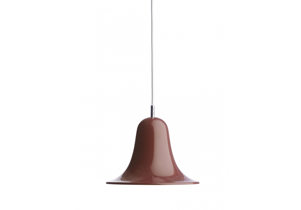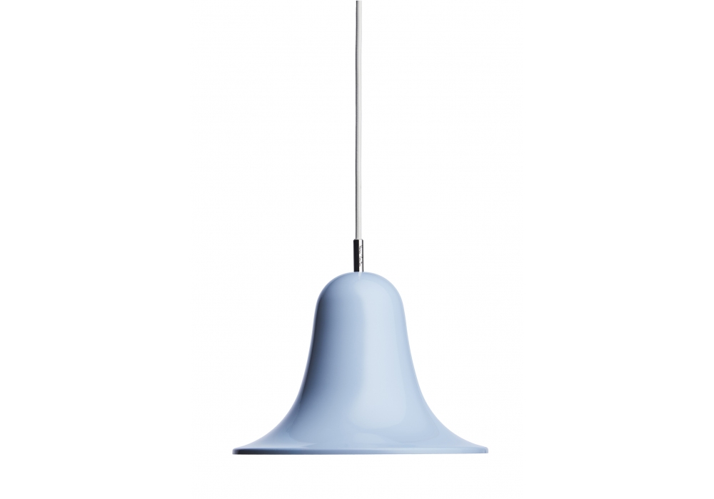 Pantop conçue par Verner Panton pour Verpan est une suspension avec abat-jour en forme de cloche en métal. Rosace en PVC et câble de suspension en tissu noir ou blanc selon la finition de l'abat-jour. Disponible en différentes finitions.