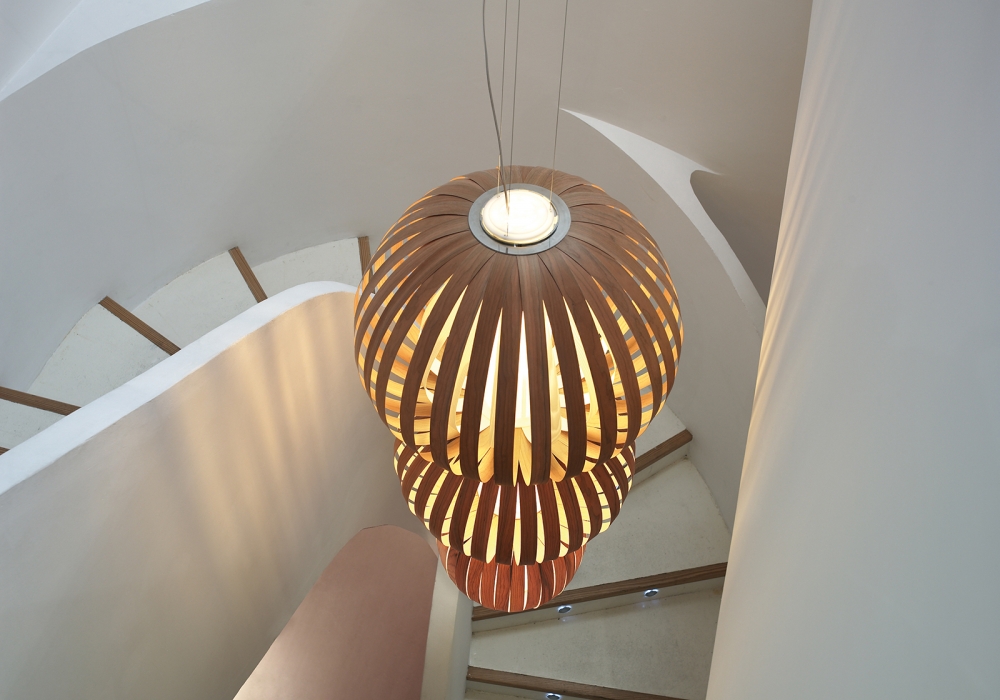 Totem conçu par Burkhard Dämmer & Mariví Calvo pour LZF est une suspension réalisé en bois available in the models, base, dimmable and dimmable with remote control.. Totem est une lampe de modèles de fusion avec écrans décalés que forment un volume vertical imposant plein de rythme et de harmonie. Donnés la monumentalité de ses proportions, est conçu pour installation dans les grands espaces. Disponible en différentes finitions et dimensions.