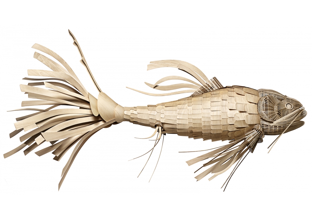 Koi LS designed by Inocuo The sign & LZF Lab for LZF is a pendant lamp made of wood. The inspiration for this wonderful idea came from an interlacing wood system and the transparencies it produced when lit. The system, consisting in the overlaying of wooden slats as if they were fish scales, is called the “Koi Fabric”, and was used for making iluminated walls. Available in two finishes.