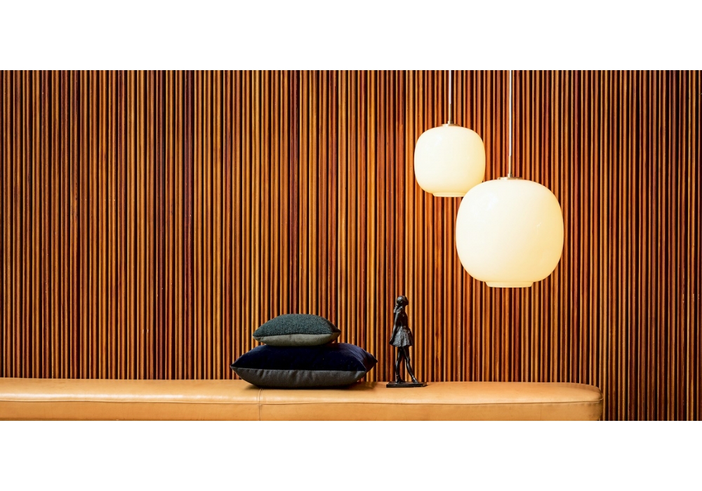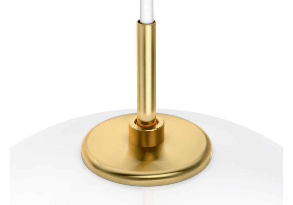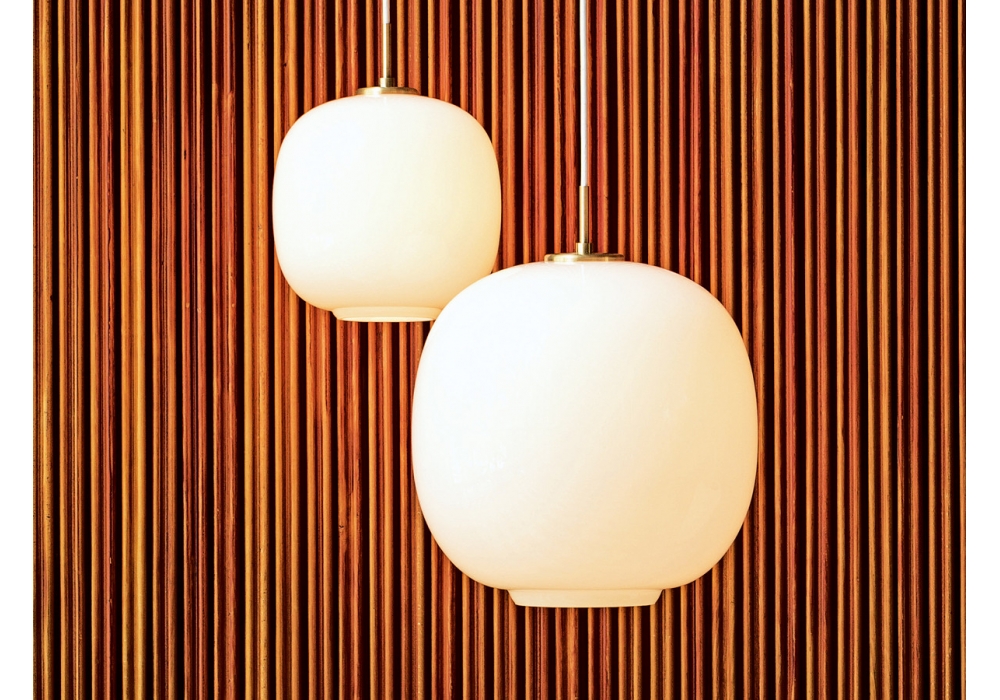 VL45 Radiohus conçue par Vilhelm Lauritzen pour Louis Poulsen est une suspension arrondie avec structure portante en laiton brossé. Le diffuseur est en verre soufflé opale blanc brillant et protège une source lumineuse LED ou halogène dans différentes versions dimmables. VL45 Radiohus est disponible en différentes tailles.