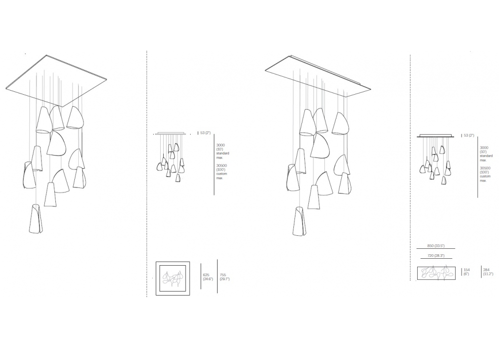 21.11 de la série 21 conçue par Omer Arbel pour Bocci est une lampe à suspension avec onze pampilles, disponible en deux configurations. Chaque suspension individuelle est faite de fines feuilles de porcelaine qui s'enroulent autour d'un diffuseur en verre borosilicaté. Le résultat est un produit unique. Chaque pendentif prend une forme sculpturale dans un contexte plus large. Disponible en deux versions Rectangle ou Carré.