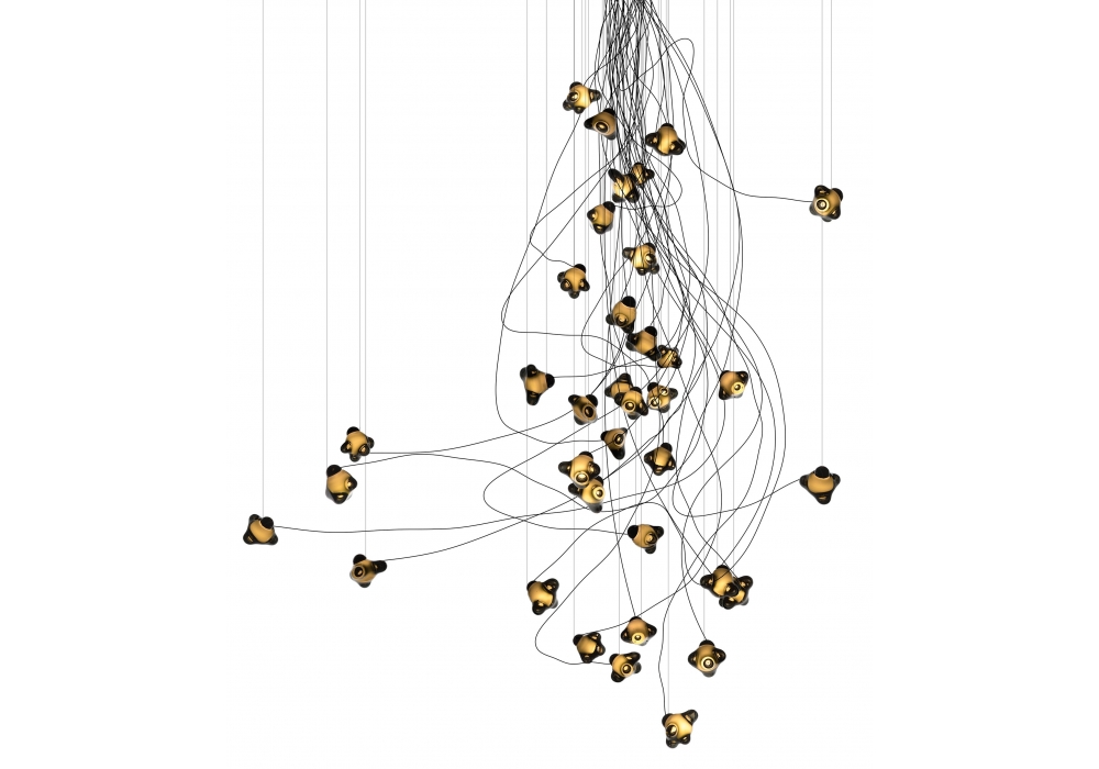 57.37 conçue par Omer Arbel pour Bocci est une lampe à suspension avec trente-sept diffuseurs. La série 57 est une collection de lampes à suspension dans laquelle chaque suspension est le résultat d'une technique de fabrication innovante qui rend le produit unique en termes de matériaux et de forme. Il consiste en le piégeage et l'injection d'air à l'intérieur des composants du verre en fusion qui se rejoignent ensuite. Une combinaison d'innovation et de savoir-faire. Diffuseurs disponibles en quatre finitions différentes.