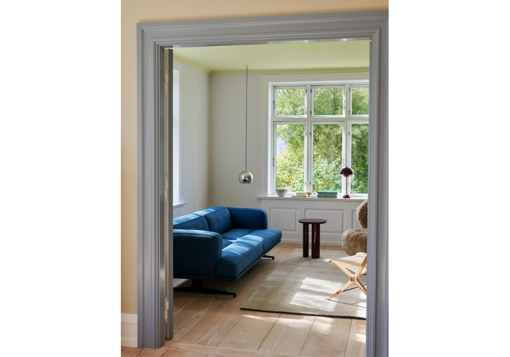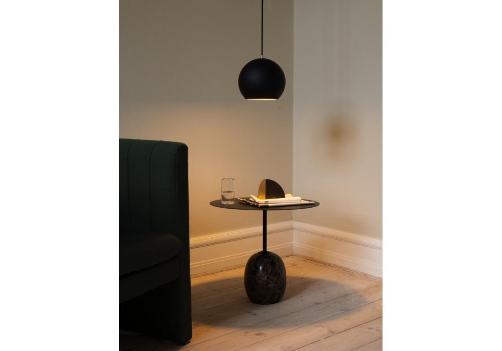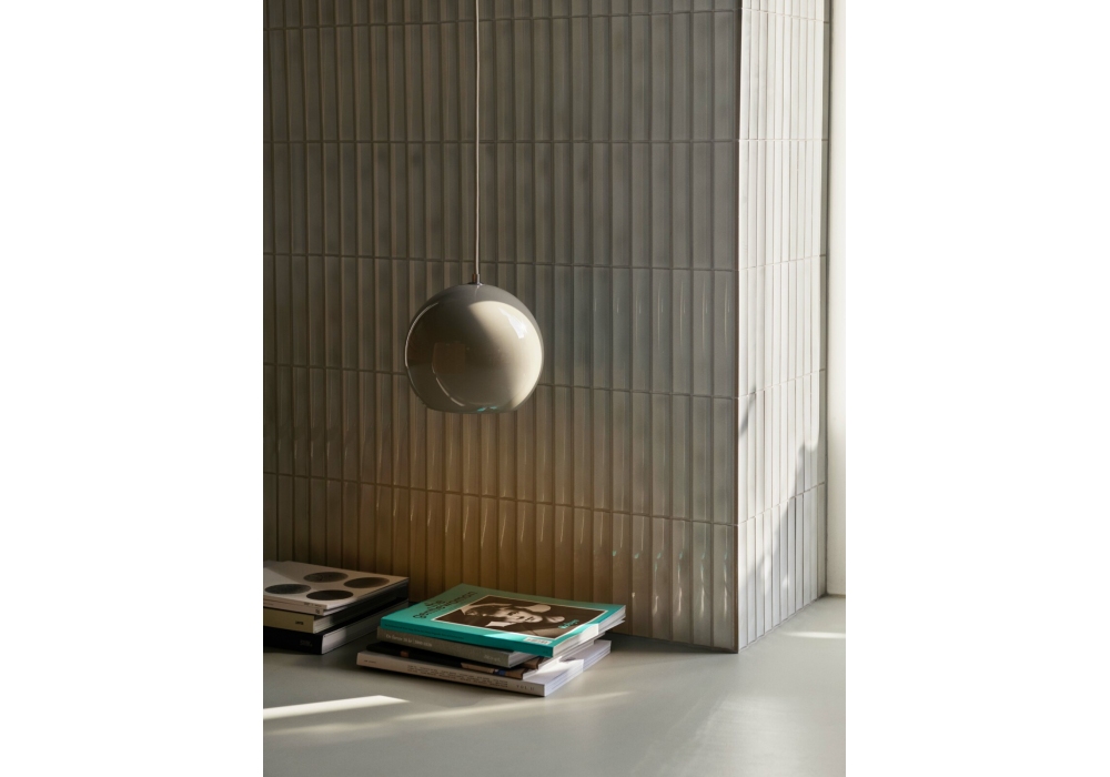 Topan VP6 conçue par Verner Panton pour &Tradition est une suspension réalisée en aluminium laqué ou plaqué et câble en tissu dans la même finition.