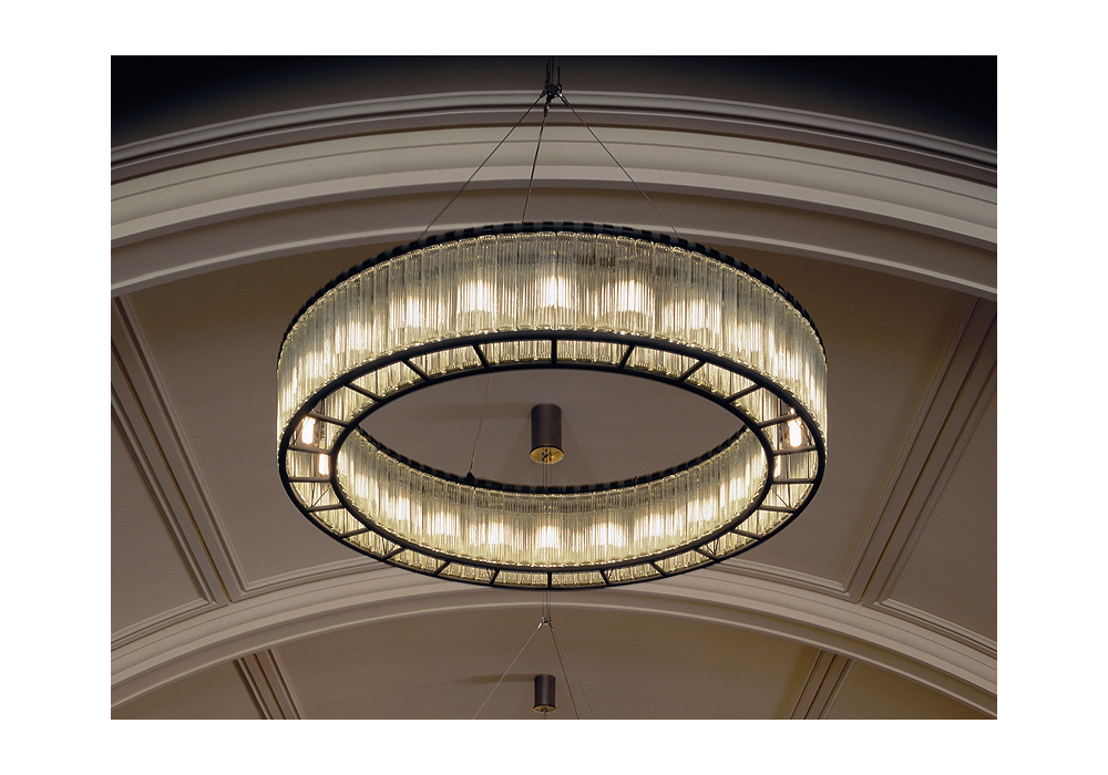 Estadio conçue par Miguel Milá pour Santa&Cole est une belle lampe de suspension disponible en 3 dimensions et 2 versions. Système de suspension en acier inoxydable. Rosette en nickel satiné inclus. Les antécédents conceptuels de cet anneau lumineux robuste, conçu à l'origine pour le Stade Olympique de Barcelone 1992, sont les chandeliers en fer forgé, image allusive des candélabres médiévaux des palais et des cathédrales.