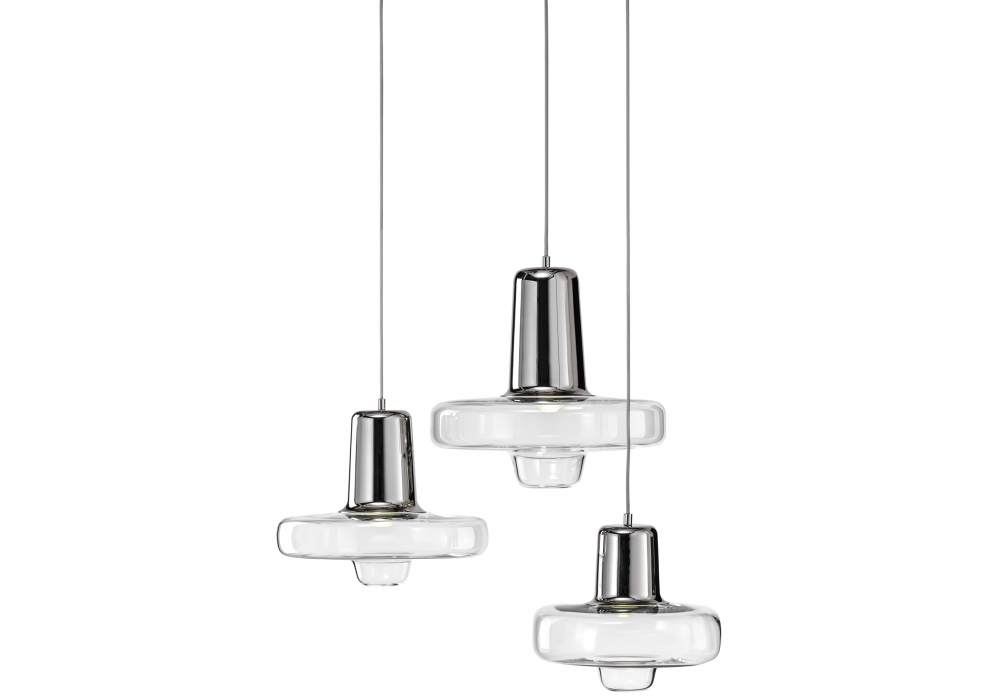 Spin Light conçu par Lucie Koldová pour Lasvit est un magnifique pendante réalisée en verre soufflé et avec le haut fini en métal. Il est disponible en différentes dimensions et finitions.