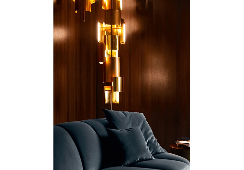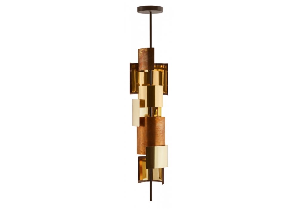 Eris conçue par Massimo Castagna pour Gallotti&Radice est une lampe à suspension avec lumière à LED (pas dimmable) avec structure laqué noir bronzé et parties métalliques en laiton brillant, satiné, bruni à la main et chromé noir.