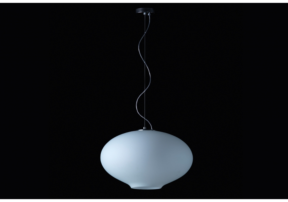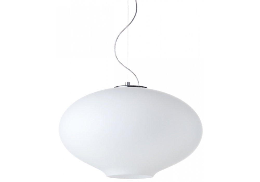 Anita conçue par M.Barbaglia pour Nemo est une lampe à suspension en verre soufflé triplex blanc opalin avec des détails en métal finition chrome. La source lumineuse adoptée est avec un culot de type E27 halogène/LED/Fluo.
