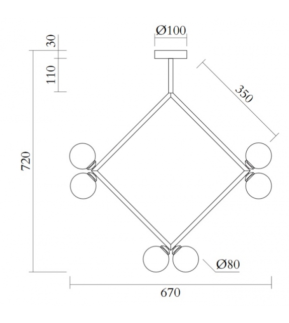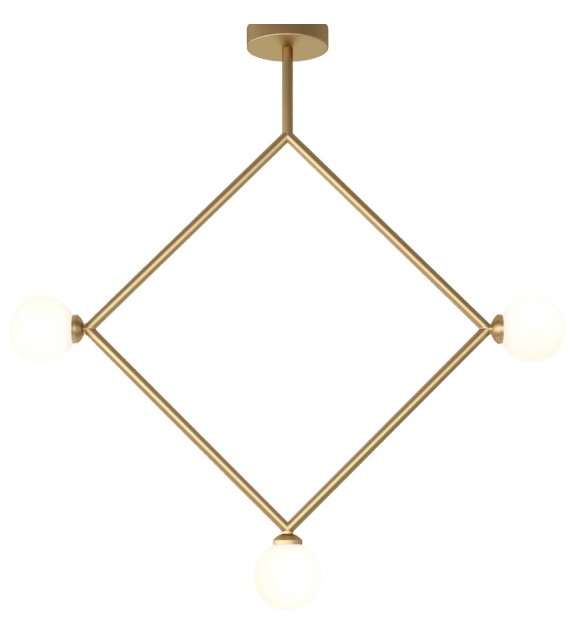 Rhombus conçu par Atelier Areti est une suspension réalisée en métal verni en poudre ou en laiton avec sphère en verre. Disponible en deux versions et finitions différentes.