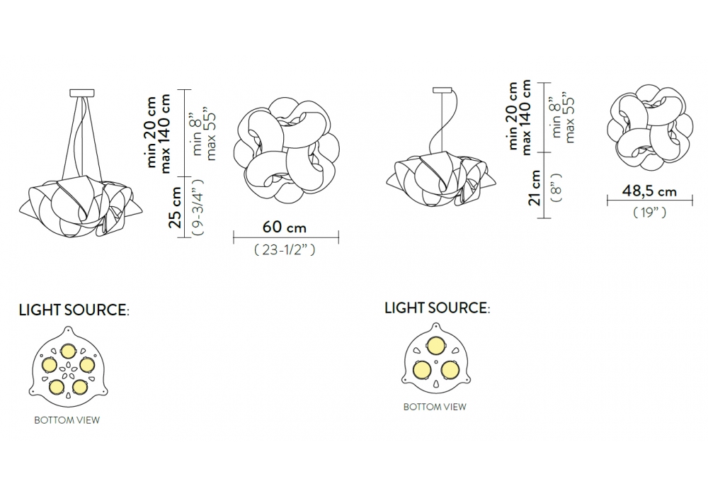 | Dimensions | • Ø 48,5 x H 21 cm; • Ø 60 x H 25 cm |