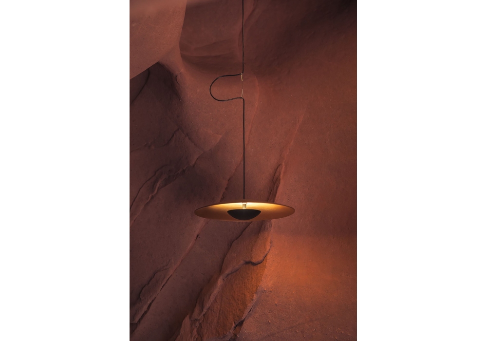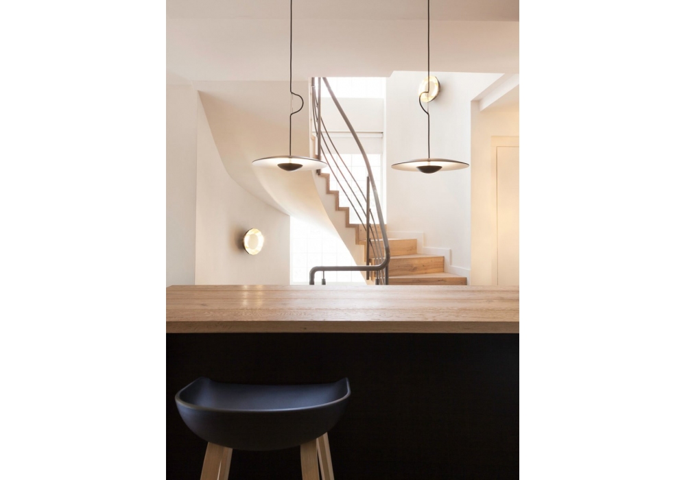 Ginger conçue par Joan Gaspar pour Marset est une suspension avec diffuseur en bois pressé de 4 mm en chêne naturel ou wengé ou en aluminium brossé. Disponible en différentes finitions et tailles.