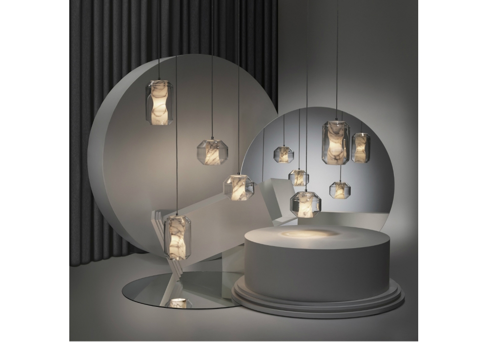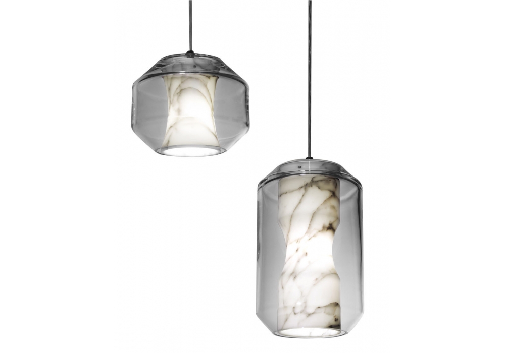 Chamber conçue par Lee Broom est une suspension avec diffuseur de marbre Carrara sculptural dans un vaisseau en cristal de plomb. Il exprime les inattendues qualités translucides du marbre dans un pendentif décoratif incontournable. Avec sa luminosité douce et son downlight directionnel, Chamber est disponible en deux dimensions et il il peut être accroché en grappes aussi bien individuellement. Câble transparent de 300 cm. Rosace en métal satiné blanc de 12 cm.