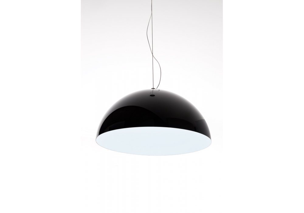Alvin conçue par Franco Zavarise pour Zava est une lampe de suspension réalisée en fer et méthacrylate opalin (PMMA) blanc ou noir et intérieur peint brillant ou feuille. Disponible en différentes tailles et finitions.