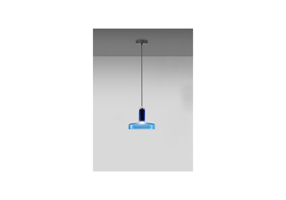 Stablight "C" conçue par Arik Levy pour Artemide est une lampe à suspension avec une structure porteuse en métal soutenue par un câble en plastique noir. Le diffuseur est de forme circulaire et en verre soufflé et protège une source de lumière LED avec un système dimmable. Stablight "C" est disponible en différentes finitions.