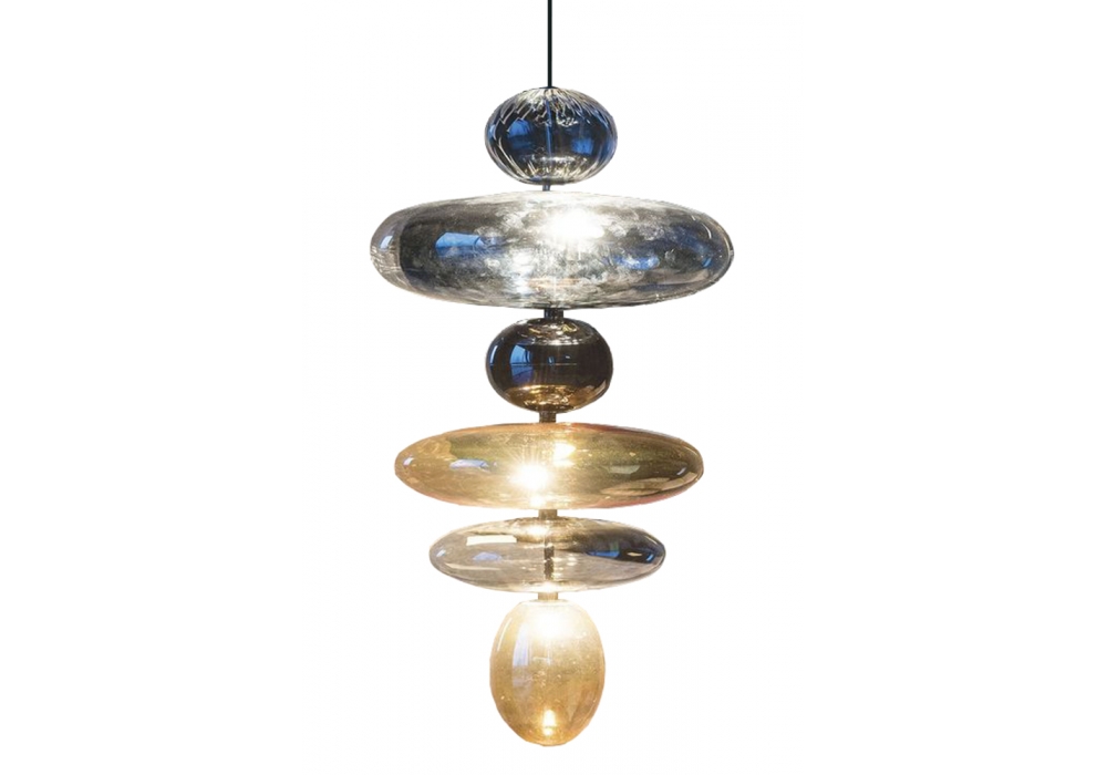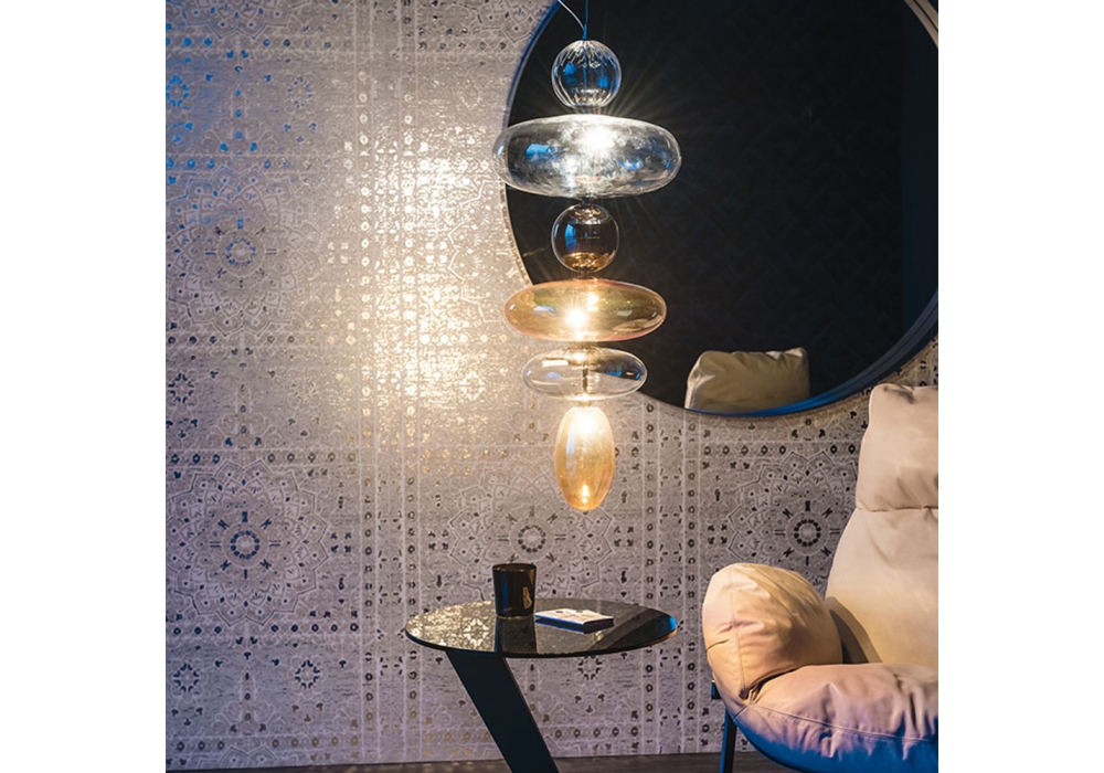 Baban conçue par Andrea Lucatello pour Cattelan Italia est une suspension avec structure en acier chromé noir et diffuseur en verre borosilicate clair, fumé et orange. Disponible en deux versions: 220V et 110V. Ampoule incluse. Il est possible d'intégrer un câble additionnel de 2mt.
