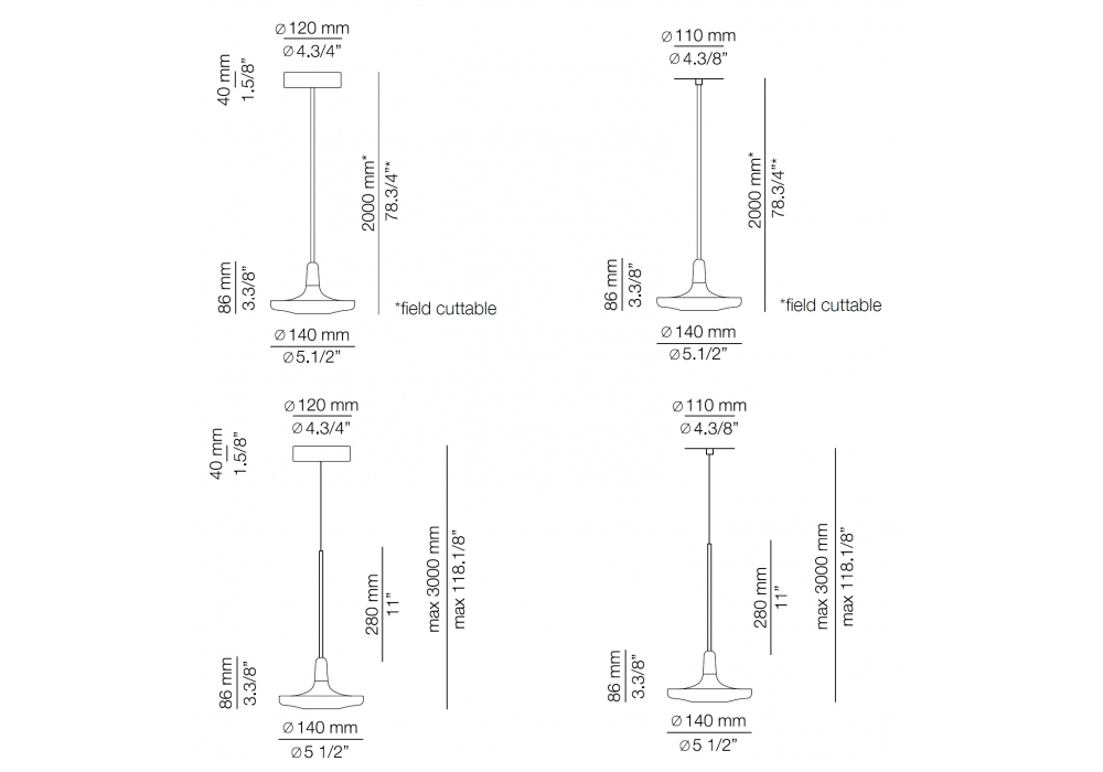 | Plafond rose | Ø 12 x H 4 cm; Ø 11 cm; Ø 12 x H 4 cm; Ø 11 cm. |