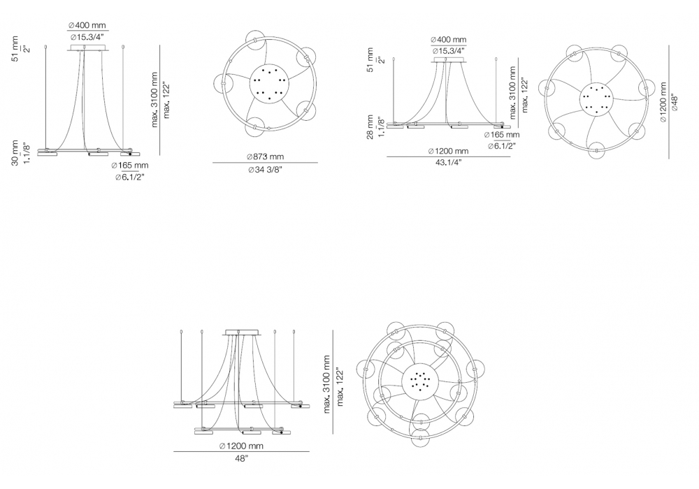 | Dimensions | Ø 87,3 x H 3 cm; Ø 120 x H 2,8 cm; Ø 120 x H 310 cm. |