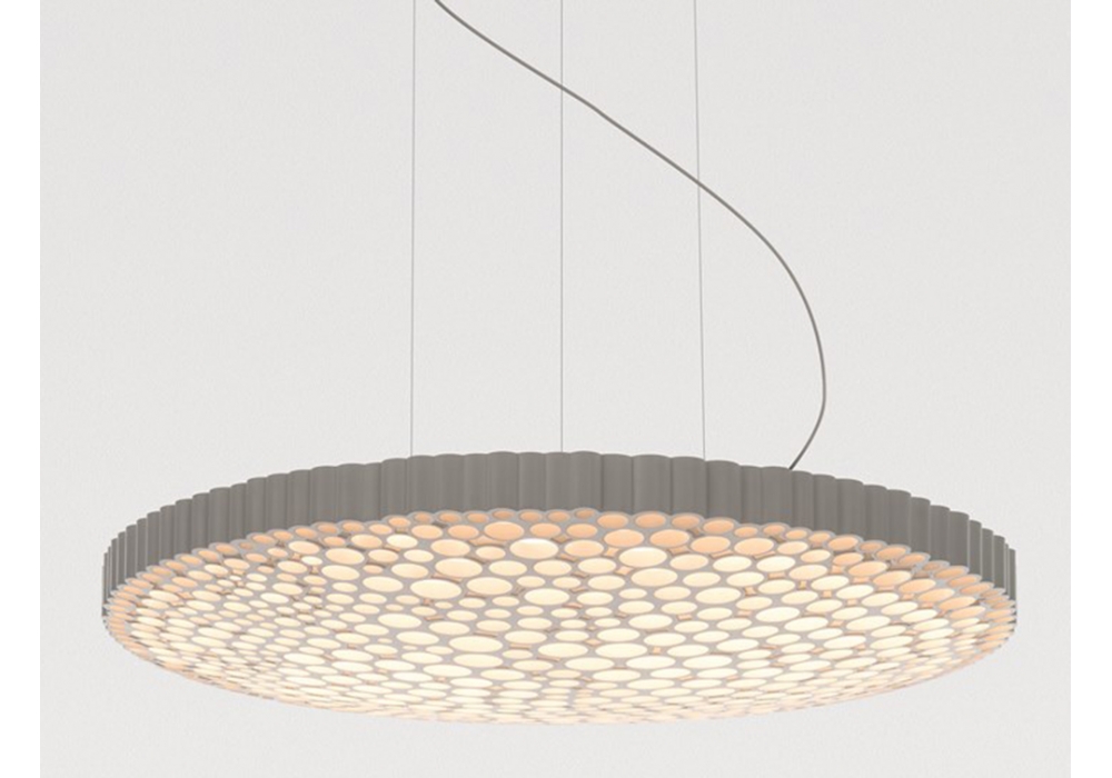 Calipso conçue par Neil Poulton pour Artemide est une lampe à suspension circulaire entièrement réalisée en technopolymère blanc. La source lumineuse adoptée est une LED avec un système de gradation Push ou Push & App, qui peut être gérée à distance via l'application Artemide. Calipso est disponible dans différentes nuances de lumière.