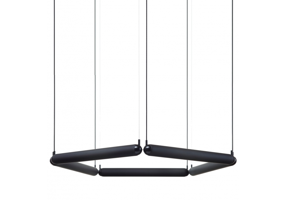 Puro Contour conçue par Lucie Koldová pour Brokis est une lampe à suspension structurée par des éléments tubulaires en verre opale et métal. La source lumineuse utilisée est de type LED dimmable dans différentes gradations et versions. Puro Contour est disponible en différents modèles et finitions.