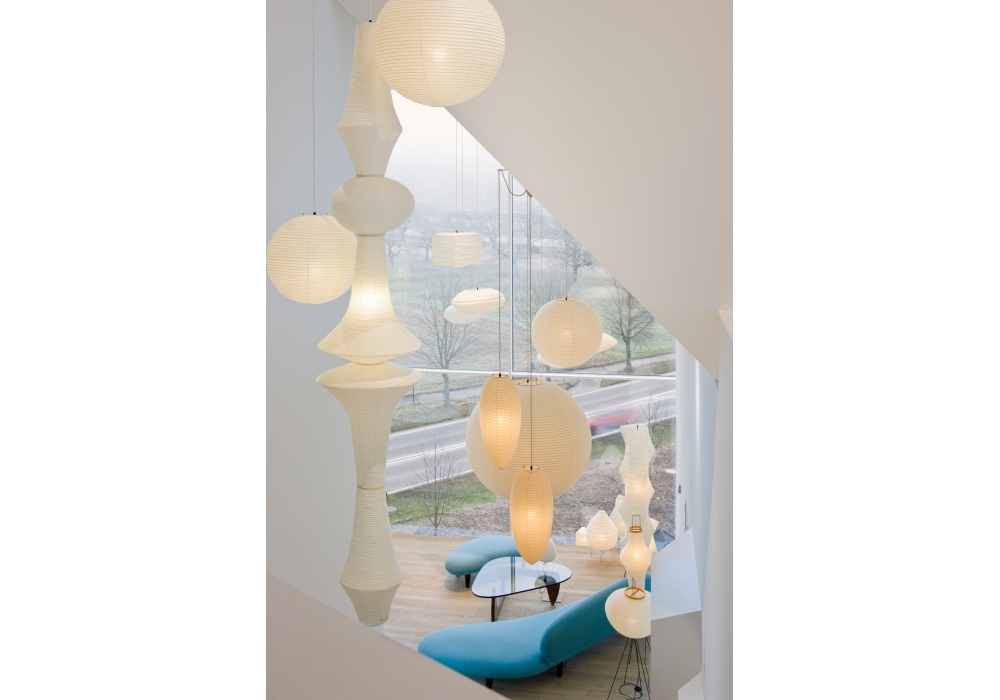 Akari E conçue par Isamu Noguchi pour Vitra est une lampe à suspension qui fait partie d'une série de lampes "le Akari Light Sculputures", fabriquées à la main par des artisans japonais à l'aide de papiers washi traditionnels. Le nom dérive du mot japonais «Akari» qui signifie «lumière», connotant à la fois l'illumination et la légèreté physique.