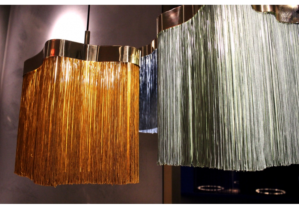 Arcipelago conçue par Servomuto pour Contardi est une lampe à suspension avec structure porteuse et rosace circulaire en laiton poli. L'abat-jour est réalisé en tissu composé de franges et protège une source lumineuse LED avec un système dimmable ou standard. Arcipelago est disponible en différentes finitions de franges, longueur de câble de suspension variable et versions de contrôle de la lumière.