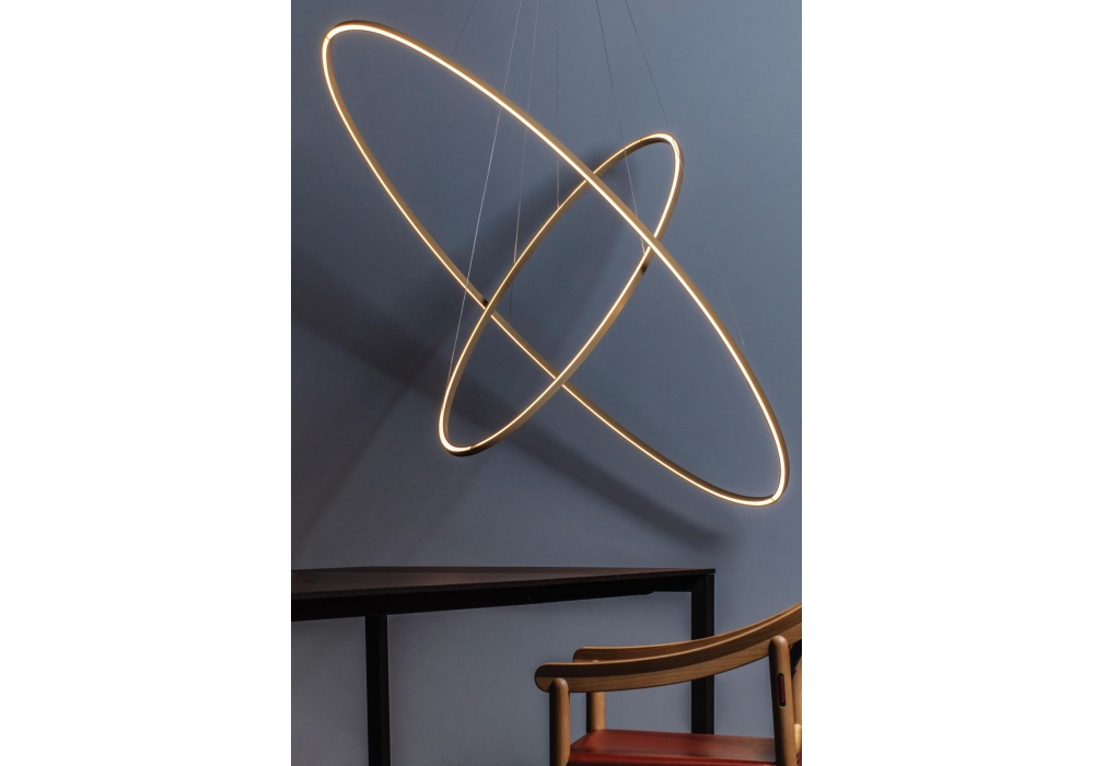 Ellisse Double Mega conçue par Federico Palazzari pour Nemo est une lampe à suspension ellipsoïdale en aluminium extrudé peint. Le diffuseur est en méthacrylate opale et masque une source lumineuse LED dimmable dans différentes nuances de lumière. Ellisse Double Mega est disponible en différentes finitions