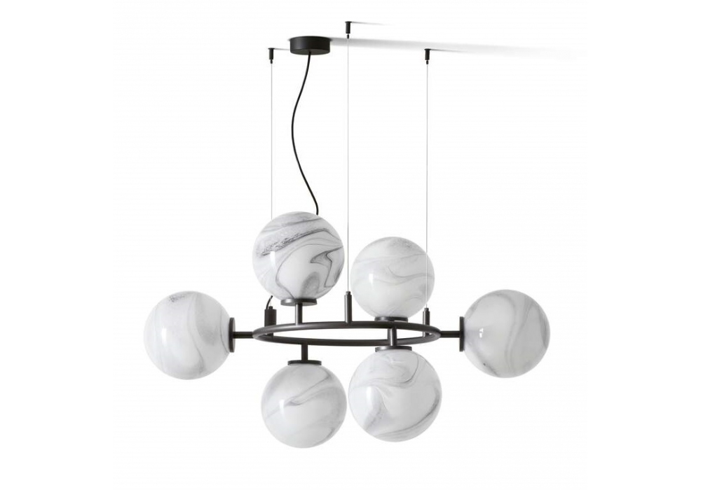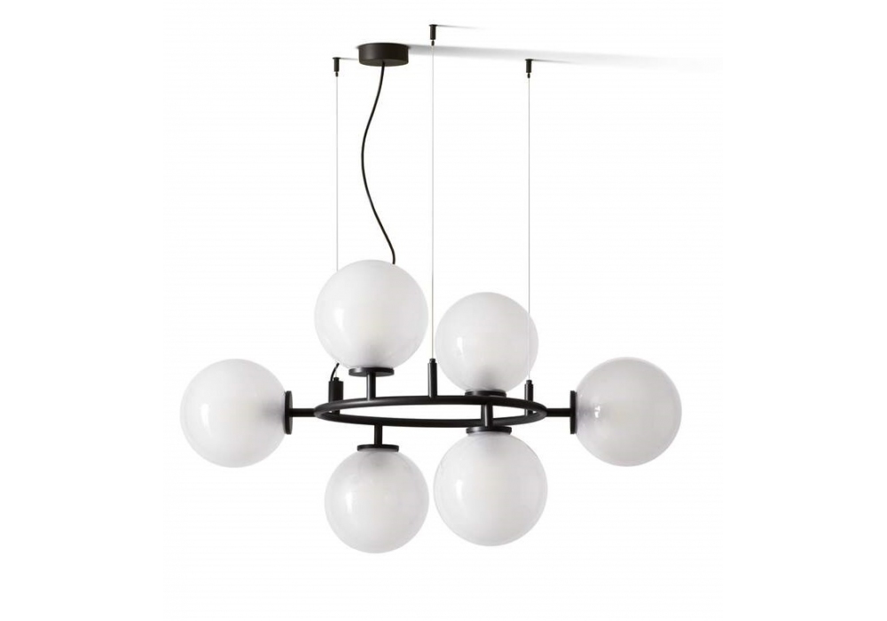 089 Constellation conçue par Cassina est une lampe de suspension circulaire avec structure noir et abat-jour disponibles en 2 finitions.