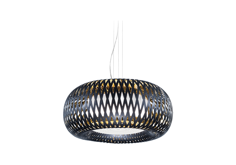 Kalatos conçue par Elisa Giovannoni pour Slamp est une lampe à suspension en polycarbonate métallique ou Lentiflex® et polycarbonate. La source lumineuse utilisée est de type LED à filament dimmable. Kalatos est disponible en différentes finitions.
