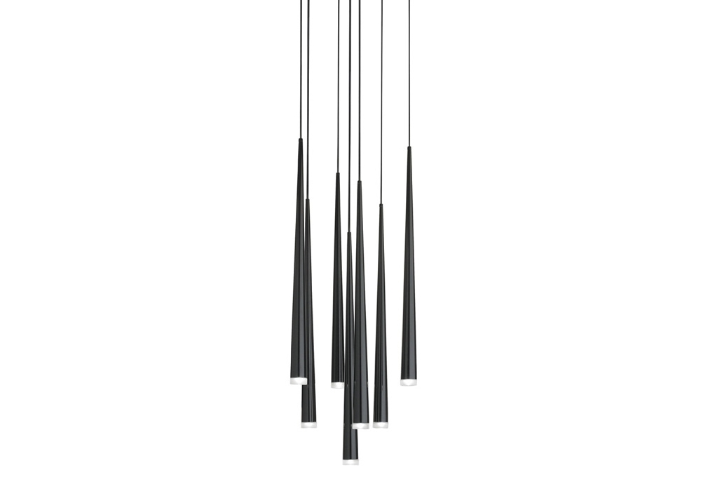 Slim conçue par Jordi Vilardell pour Vibia est une lampe à suspension circulaire avec structure porteuse et rosace en acier. Le diffuseur est en verre et protège une source de lumière LED qui peut être dimmable en différentes versions. Les pampilles sont de forme cylindrique en fibre de verre et carbone. Slim est disponible en différents modèles, finitions, nuances et versions dimmables.