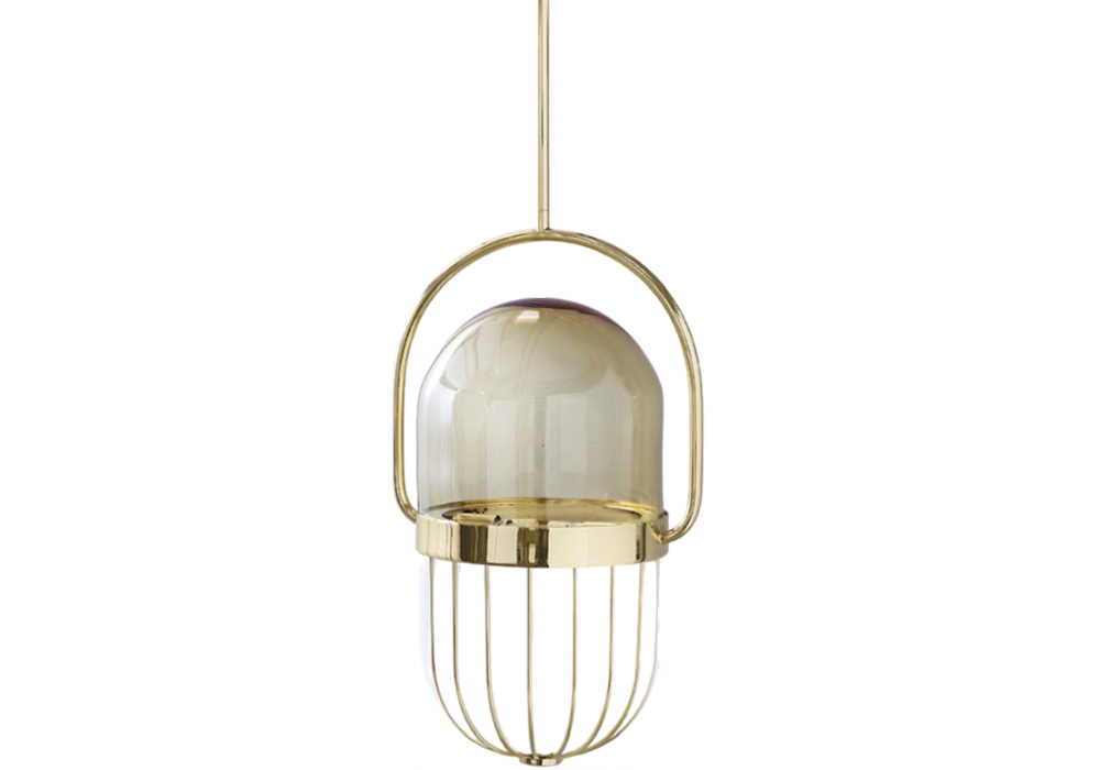 Pill 7237/2 conçue par Matteo Zorzenoni pour MMLampadari est une lampe à suspension avec structure en métal (or 24 carats) et diffuseur en verre disponible en deux variantes de couleurs.