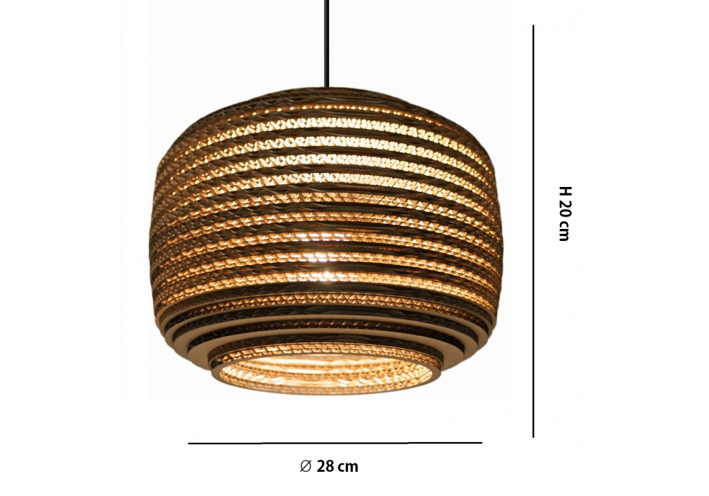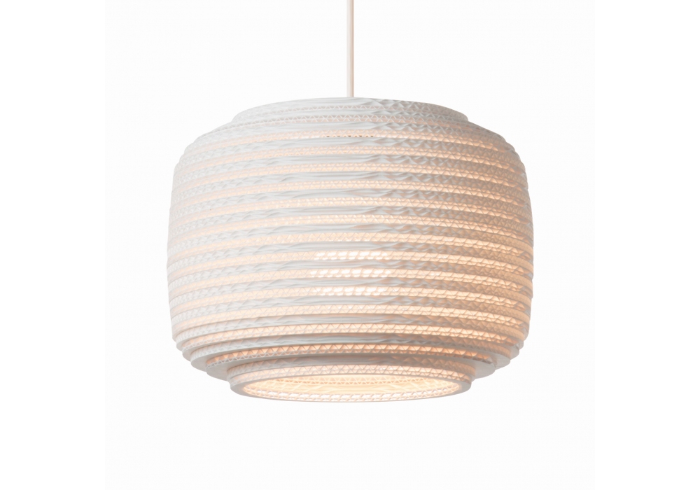 Ausi12 conçue par Graypants est une lampe à suspension avec diffuseur en carton ondulé recyclé disponible en deux variantes (naturel et blanc).