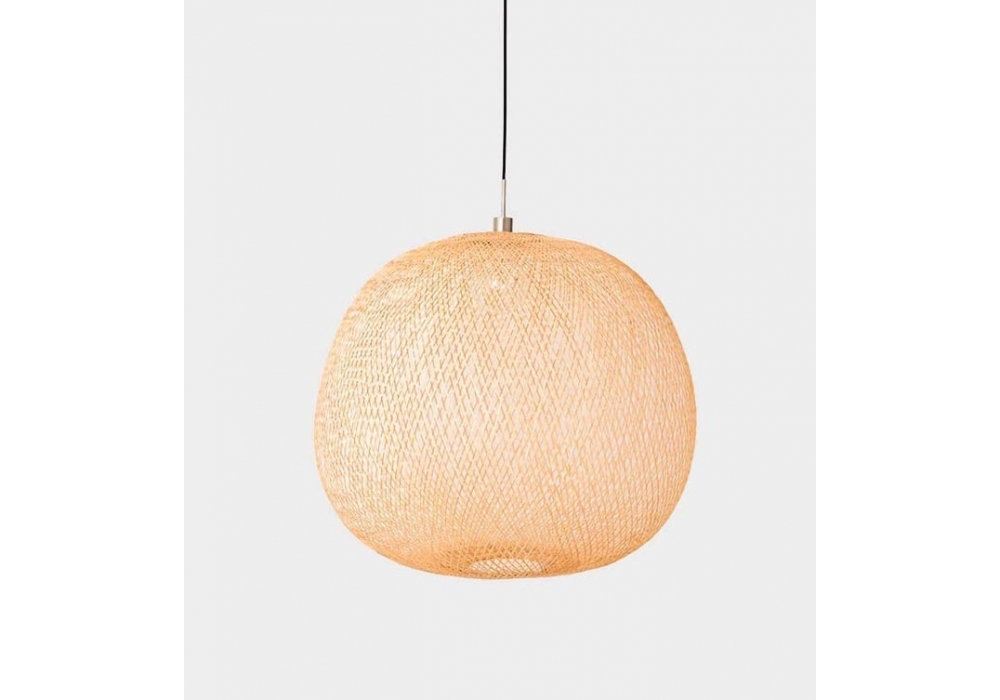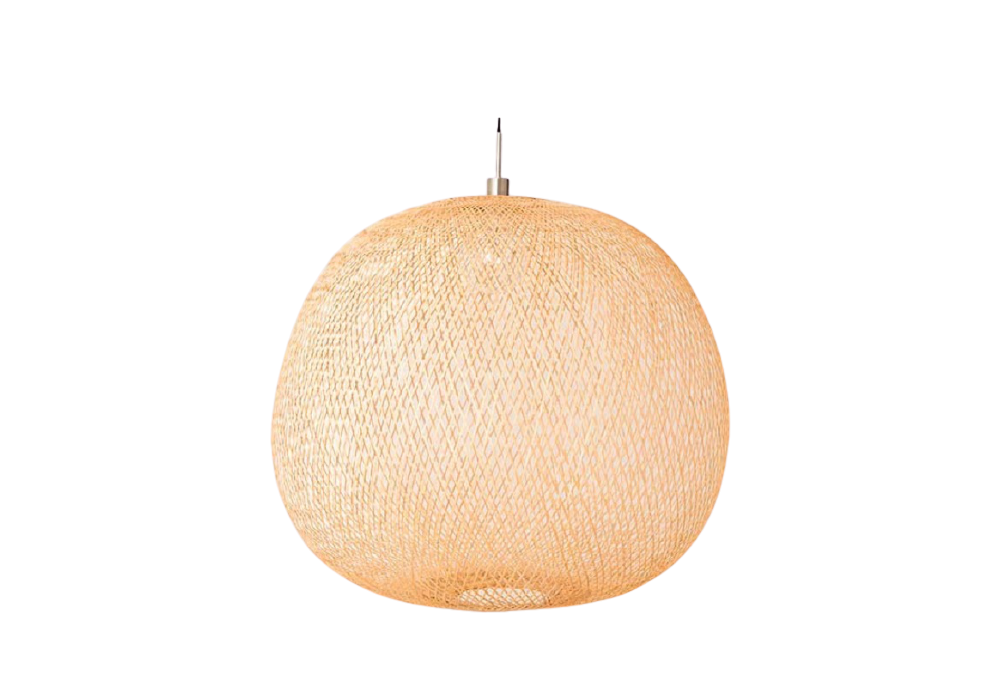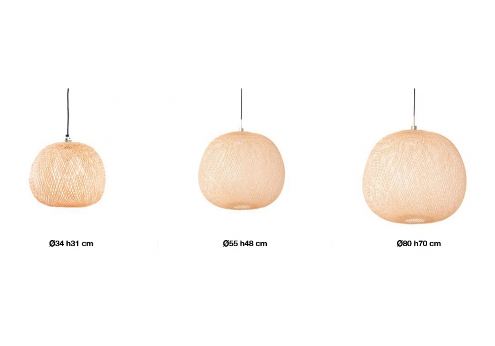 Plum conçue par Ay Illuminate est une lampe à suspension en bambou, disponible en trois tailles (petite, moyenne, grande).