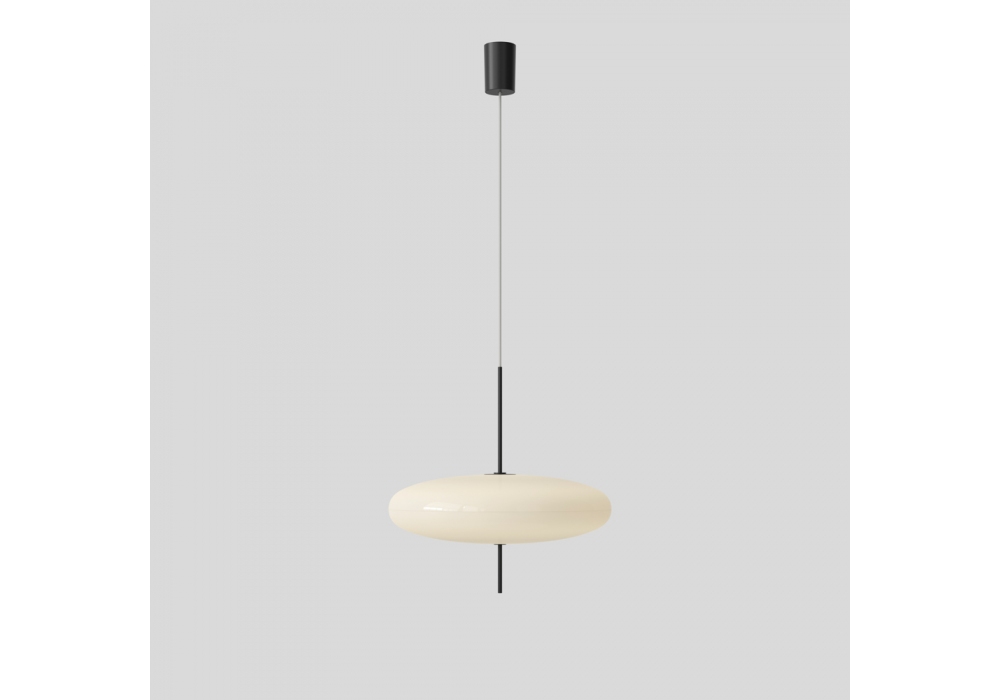 Model 2065 conçue par Gino Sarfatti pour Astep est une lampe à suspension avec diffuseur en méthacrylate opale et structure en aluminium, disponible en différentes finitions.