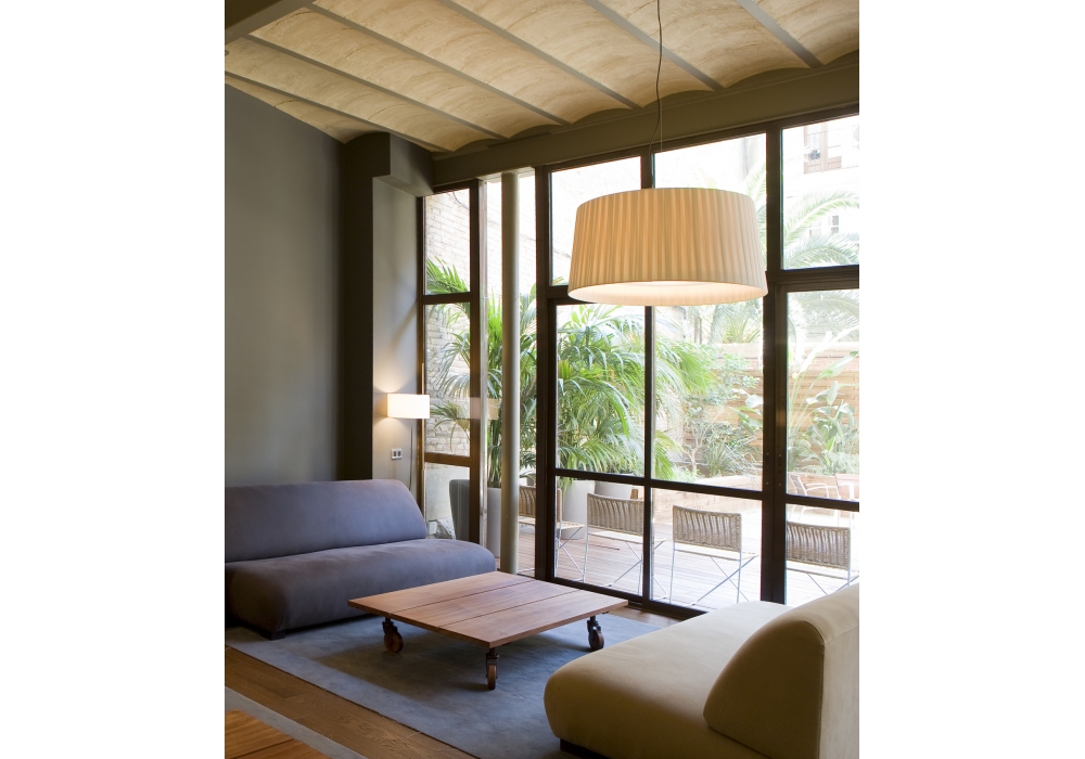 GT7 conçue par Santa&Cole est une suspension avec abat-jour, armature métallique et rosette disponible en plusieurs couleurs et finitions.