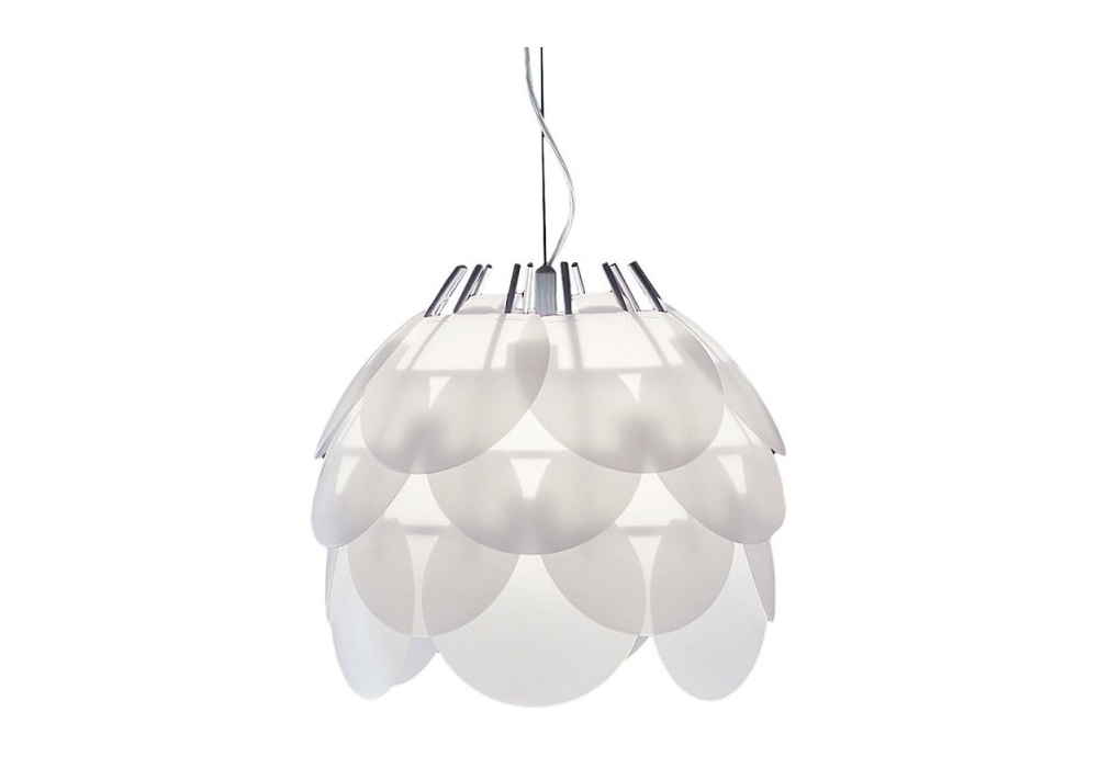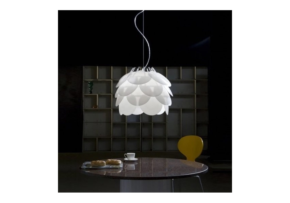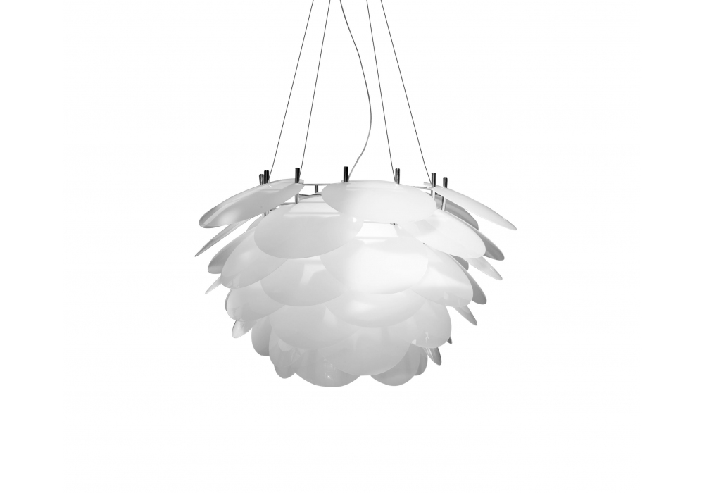 Nuvole Vagabonde conçue par Elio et Emiliana Martinelli pour Martinelli Luce est une lampe à suspension avec structure en métal. Le diffuseur est structuré par de multiples éléments en polycarbonate blanc opale et masque une source lumineuse de type LED. Nuvole Vagabonde est disponible en différents modèles.