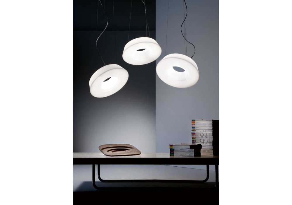 Circular Pol conçue par Emiliana Martinelli pour Martinelli Luce est une lampe à suspension circulaire entièrement réalisée en polyéthylène moulé blanc. La source lumineuse retenue est de type LED dimmable intégrée. Circulaire Pol est disponible en différentes tailles.
