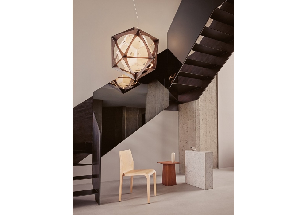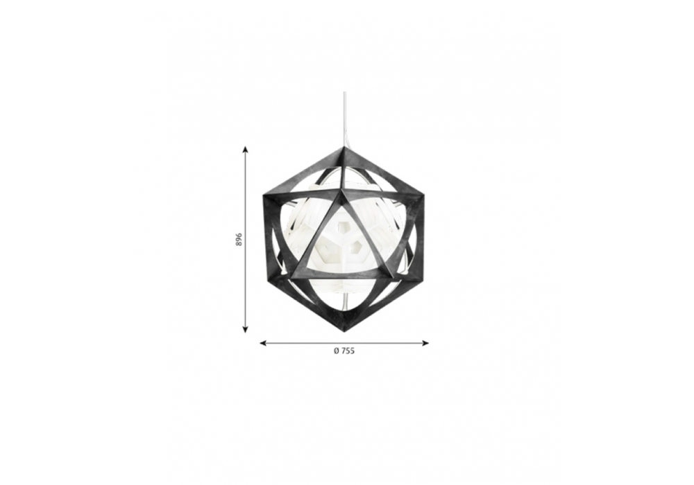 OE Quasi Light conçue par Olafur Eliasson pour Louis Poulsen est une lampe à suspension polygonale avec cadre en aluminium peint en aluminium foncé. Le diffuseur est en polycarbonate et protège une source lumineuse LED dimmable dans différentes versions et gradations lumineuses.