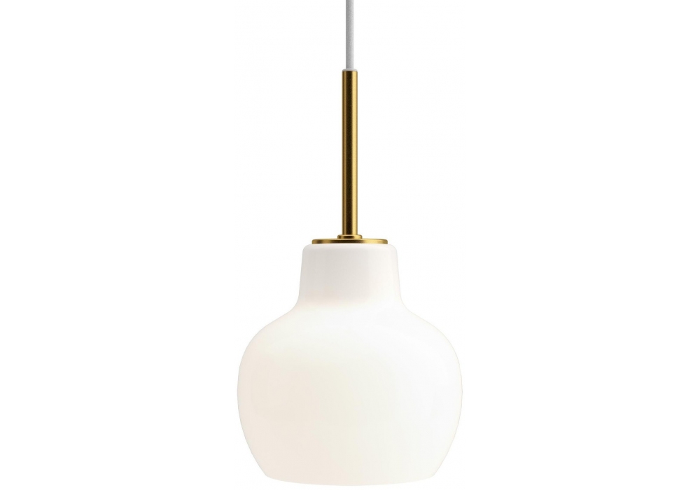 VL Ring Crown 1 conçue par Vilhelm Lauritzen pour Louis Poulsen est une lampe à suspension avec structure portante en laiton non traité. Le diffuseur est en verre soufflé oplaino brillant et protège une source lumineuse LED ou halogène avec culot E27.