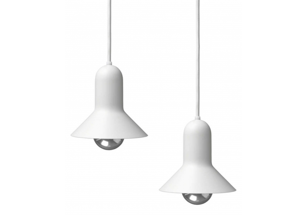 BT1091 Confetti conçu par Torsten Thorup & Claus Bonderup pour Carl Hansen & Søn est un ensemble de 2 lampes à suspension avec abat-jour en acier thermolaqué disponible en différentes couleurs ou en laiton poli. Prise électrique E26 ou E27 selon le pays. Le rosace de plafond standard est inclus (rosace noire pour câble noir ; rosace blanche pour câble blanc).