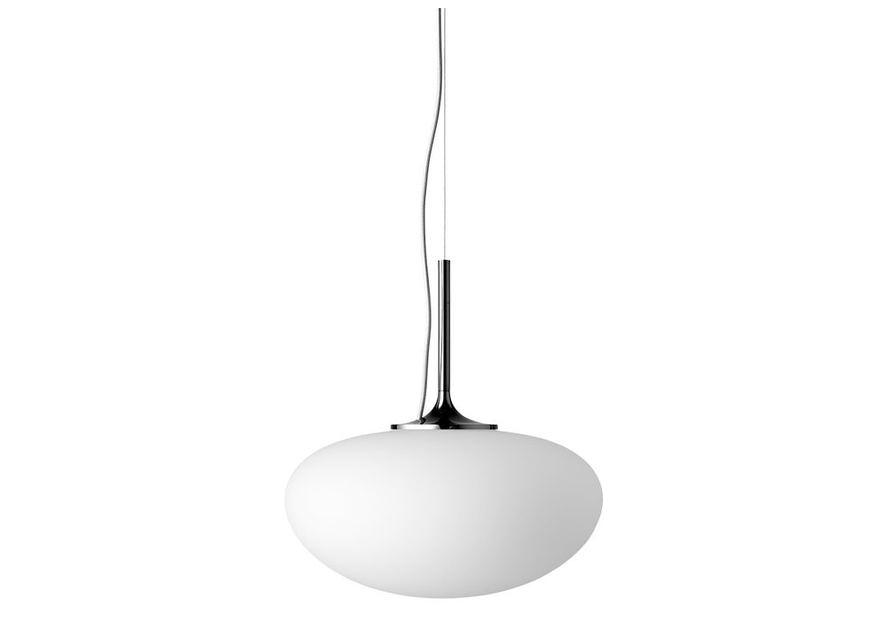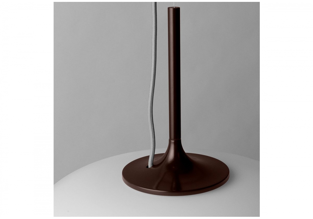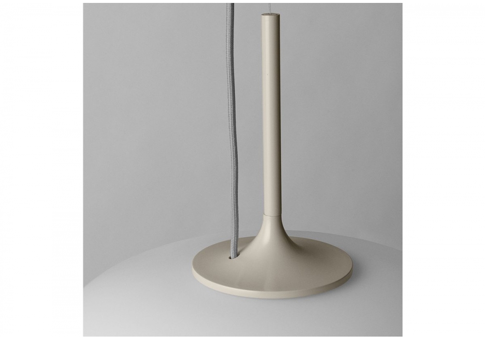 Stemlite conçue par Bill Curry pour Gubi est une suspension composée d'une tige en métal et d'un abat-jour en verre dépoli.