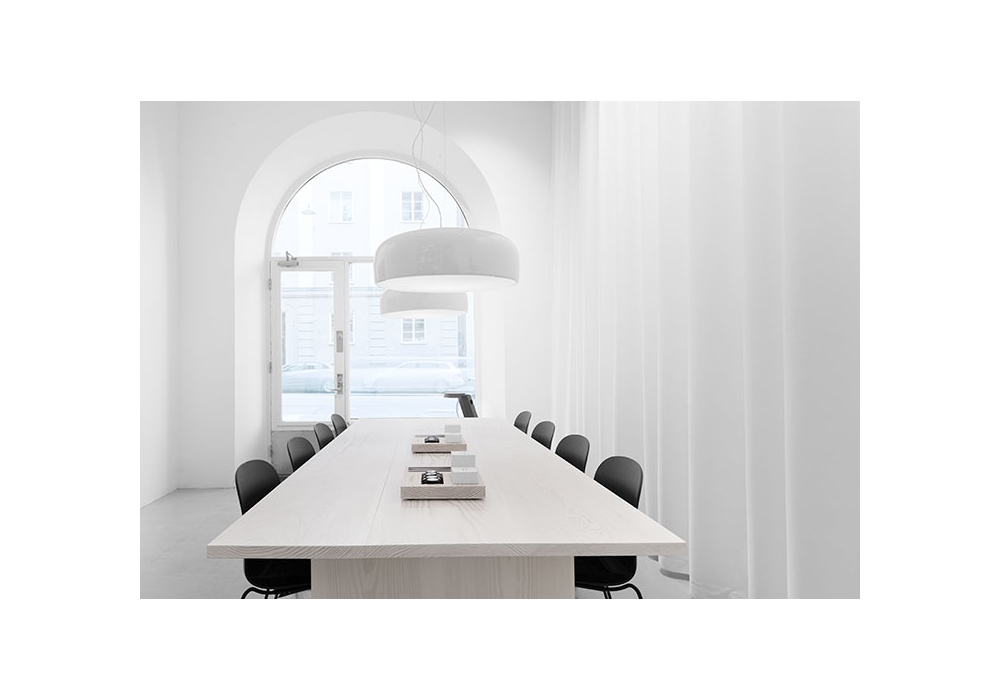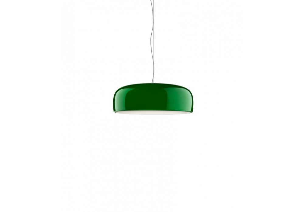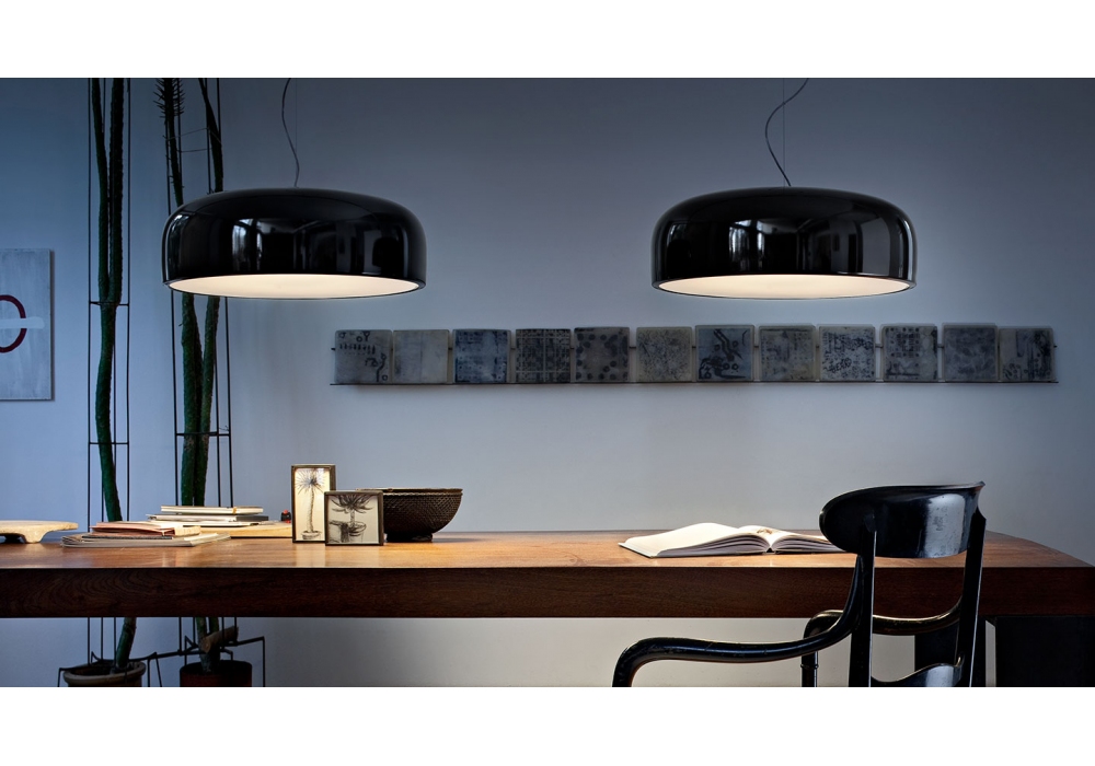 Smithfield Pro conçue par Jasper Morrison pour Flos est une suspension à lumière directe. Corps en aluminium. Diffuseur moulé par injection en méthacrylate opale. Fixation au plafond en acier avec câble de suspension en acier. Câble électrique 5 pôles à double isolation en PTFE (fluoropolymère). Variateur d'intensité à poussoir ou DALI inclus. Ampoule incluse.