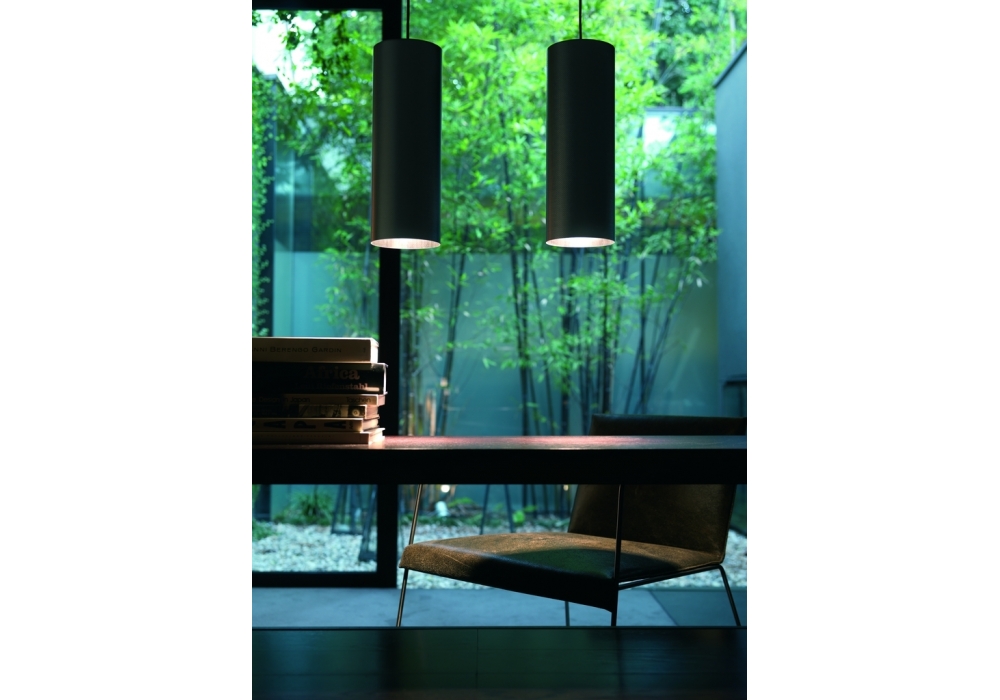 Tube conçue par Enrico Franzolini pour Quadrifoglio Group est une lampe à suspension avec structure en aluminium peint, disponible en différentes finitions. Rosace de plafond en métal peint noir. Aussi disponible en 2 dimensions.
