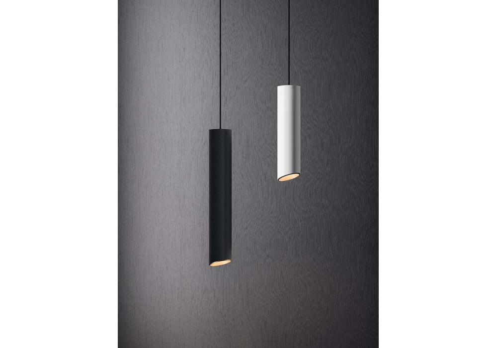 Slice conçue par Enrico Franzolini pour Quadrifoglio Group est une lampe à suspension avec structure en aluminium peint, disponible en différentes finitions. Rosace de plafond en métal peint noir. Aussi disponible en 2 dimensions.