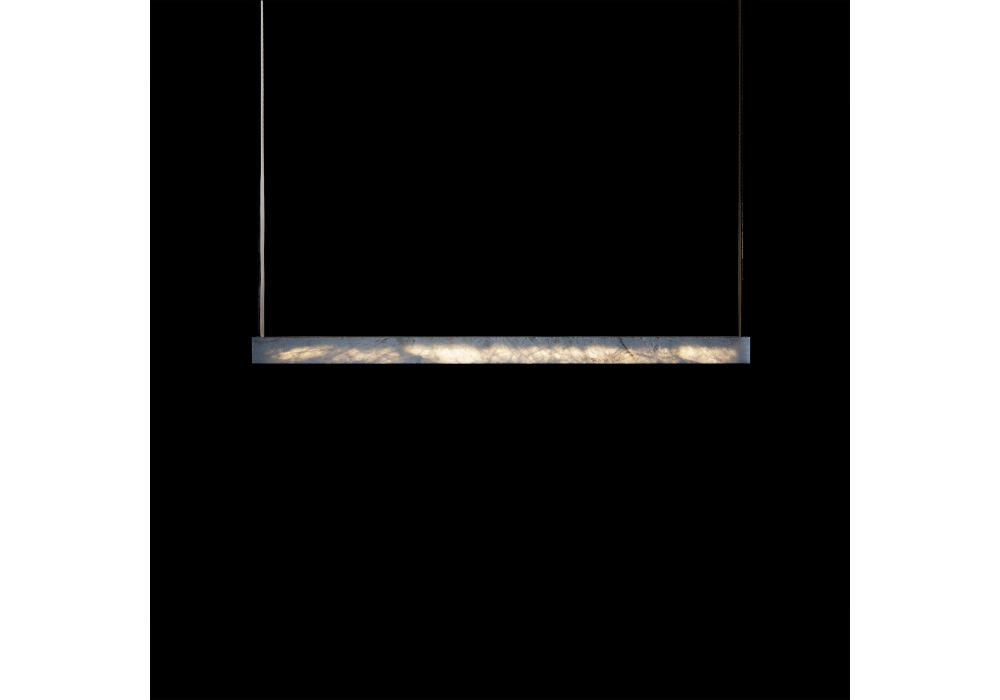Chrystal Evo conçue par Massimo Castagna pour Henge est une lampe modulable avec corps en pierre White Chrystal. Suspension et alimentation recouvertes d'une bande de cuir de 4,5 cm bordeaux, naturel ou noir sur demande. Il est disponible en version blanc chaud (3000K) ou blanc extra chaud (2700K).
