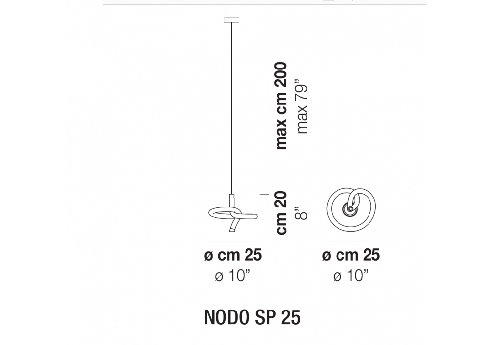 Nodo conçue par Pio et Tito Toso pour Vistosi est une lampe à suspension avec structure portante en métal couleur chrome poli. Le diffuseur est en verre blanc brillant avec une forme abstraite et adopte une source lumineuse LED ou halogène dimmable avec douille G9.